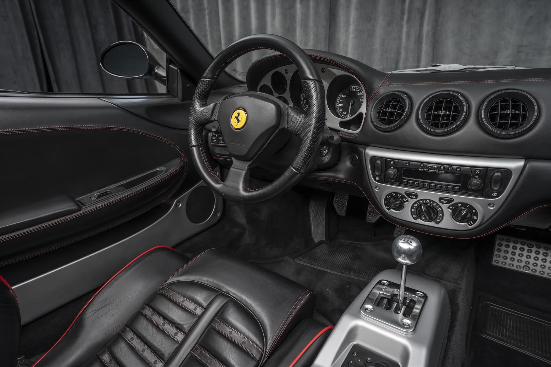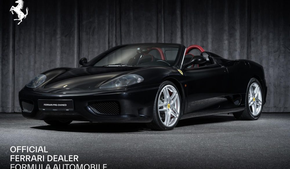 Vi har gleden av å presentere en utrolig flott og velholdt Ferrari 360 Spider med manuell girkasse! Bilen er bestilt i Nuovo Nero Dayona med sort skinninteriør og sort «soft top», videre har den matchende røde detaljer på interiør og eksteriør. Bilen er gjennomgått vårt Formula Classic Program, med en grundig sjekk og påfølgende utbedringer.