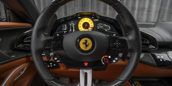 Vi har gleden av å presentere et smykke av en Ferrari Purosangue. Denne bilen vekker følelser og oppmerksomhet hvor enn man er, ikke nødvendigvis på grunn av sin selvpustende V12 som høres ut som en Formel 1 bil, men også for sine linjer, karakteristikk og ikke minst sin nydelig spec. En magisk grønn spesiallakk som heter Verde Dora, kombinert med nydelig Cuoio Toscana Hathor interiør så dekker denne kravene til selv den virkelig helt kresne.