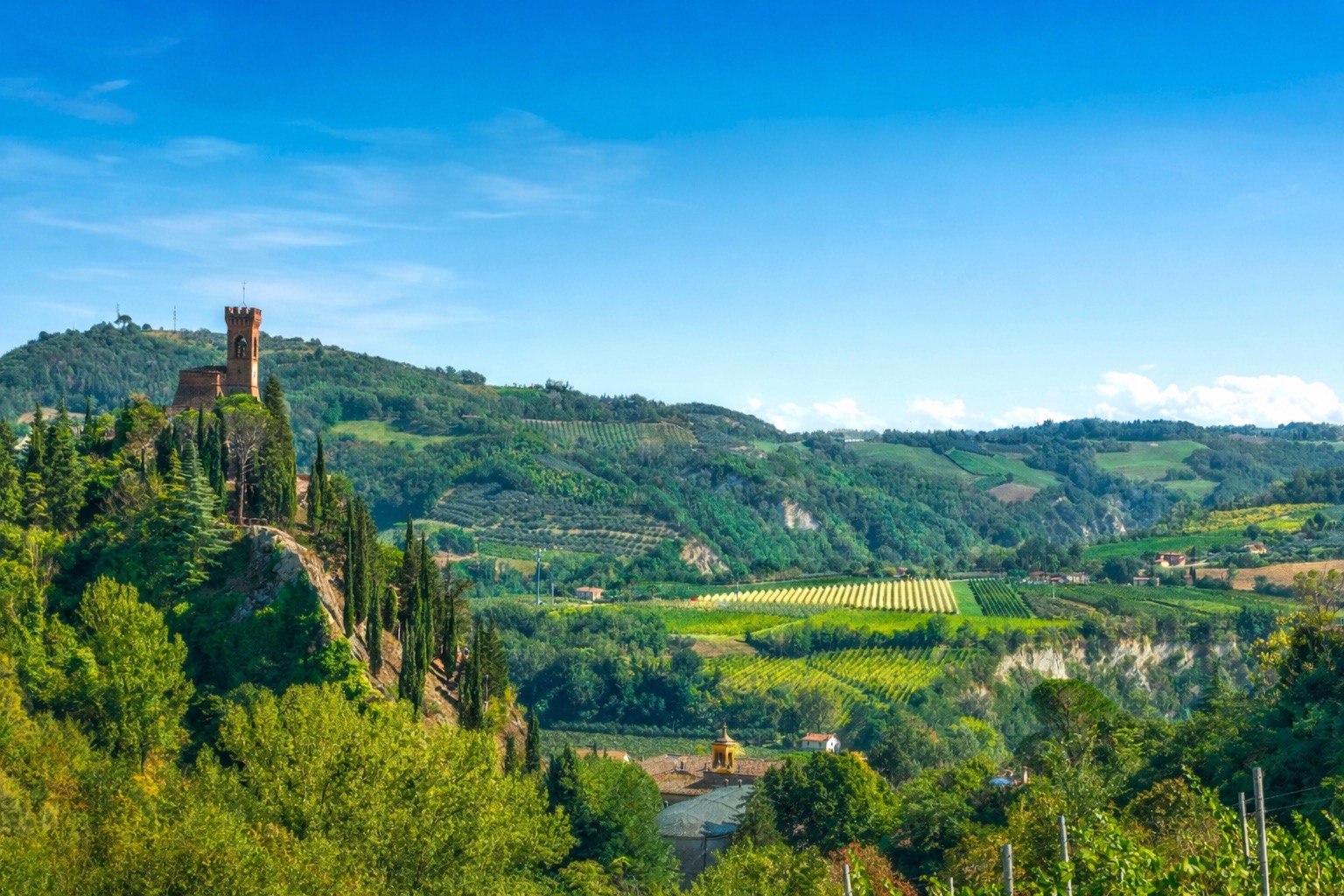 I åsene utenfor Bologna ligger Palazzo di Varignana, omgitt av vinmarker, olivenlunder og det åpne landskapet som kjennetegner Emilia-Romagna.